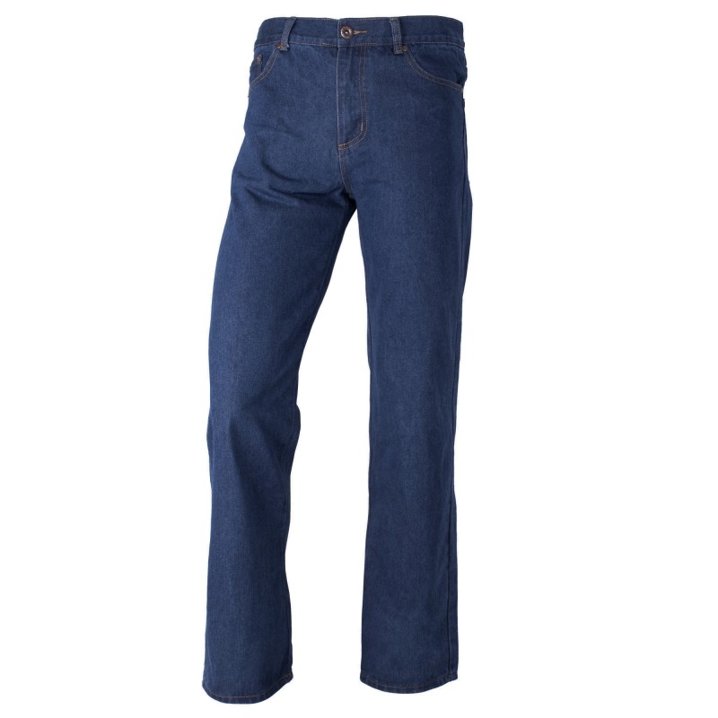 Jeans Regular Fit Hombre, un pantalón clásico y atemporal de piernas rectas. Fabricado con mezclilla, un material resistente y durable, ideal para entornos de trabajo exigentes. Posee cintura baja y pretina con corte en forma, además de bolsillos delanteros con monedero y bolsillos traseros.